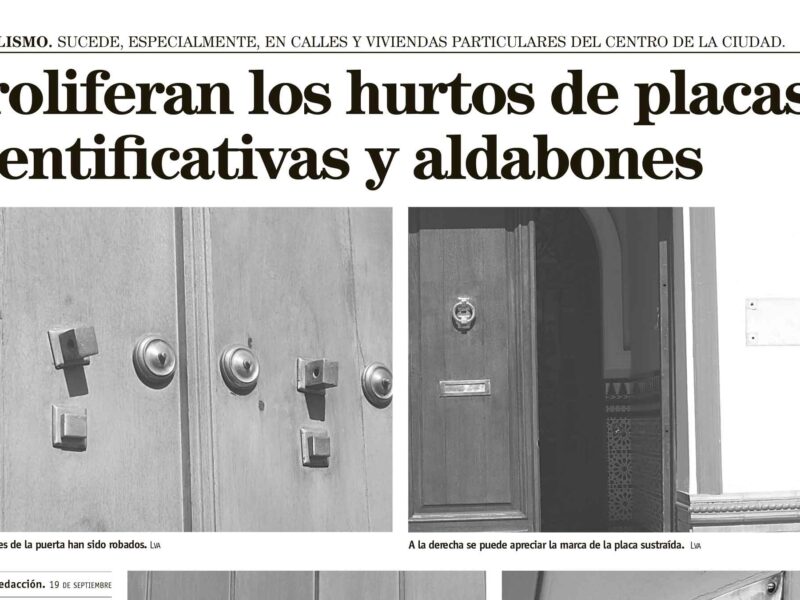 Publicado enHemeroteca Publicado en 2012: «Proliferan los hurtos de placas identificativas y aldabones» por redacción 7 octubre, 20256 octubre, 2025