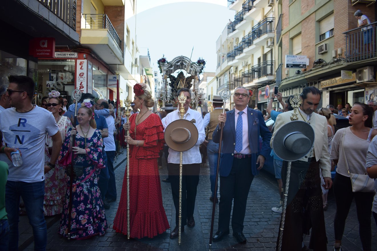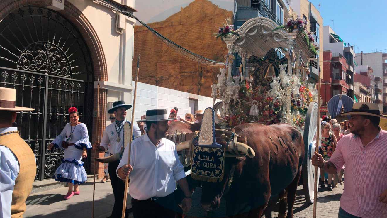 La Hermandad del Rocío de Alcalá, tras celebrar esta mañana la Misa de Romeros, ha puesto rumbo a la Aldea almonteña. A esta hora recorre las calles del Centro de Alcala. Los peregrinos tendrán que soportar durante el camino altas temperaturas que oscilarán entre los 17 y los 32 grados centígrados. A su paso por el Centro de Alcalá, el cortejo de que acompaña al Simpecado ha provocado importantes retenciones.