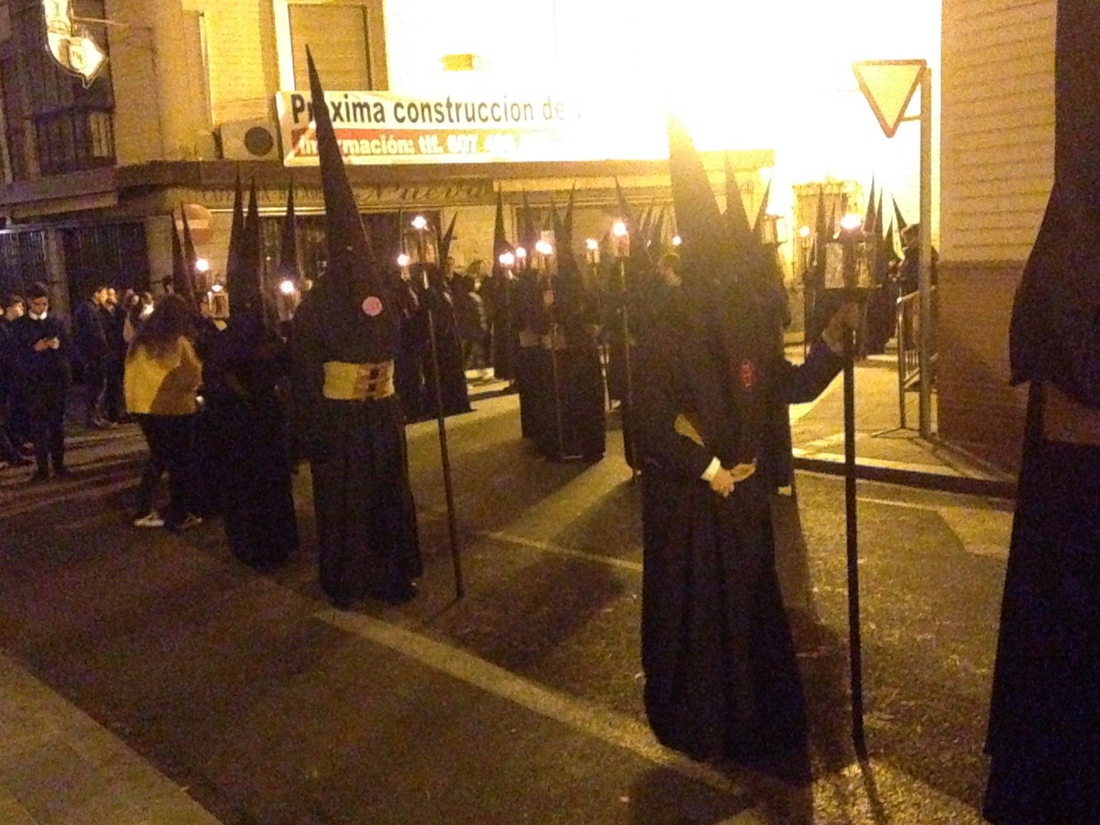 En ese momento, la Cruz de Guía alcanzaba el Ayuntamiento por lo que la Hermandad decidió suspender la estación de penitencia y volver a su templo, la iglesia de Santiago el Mayor, por la calle Herrero. Sin embargo, antes de su suspensión, nos dejó estas imágenes. (Imágenes de Irene Álvarez).