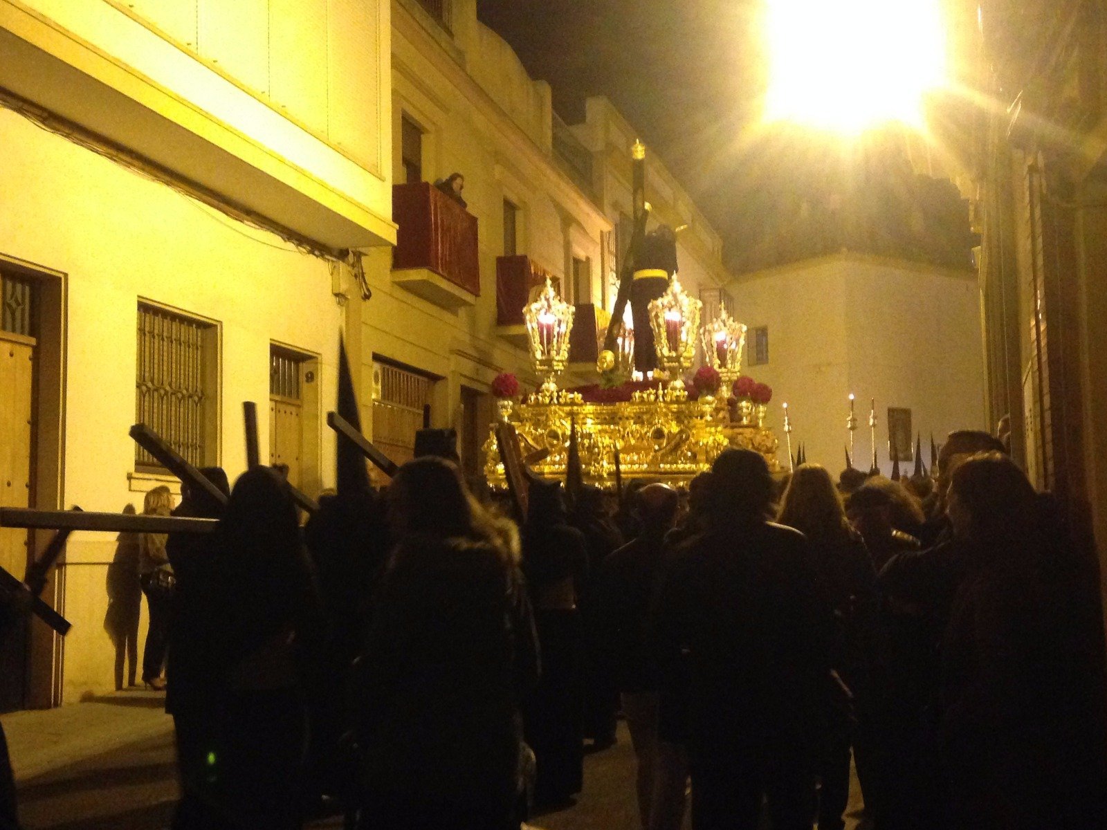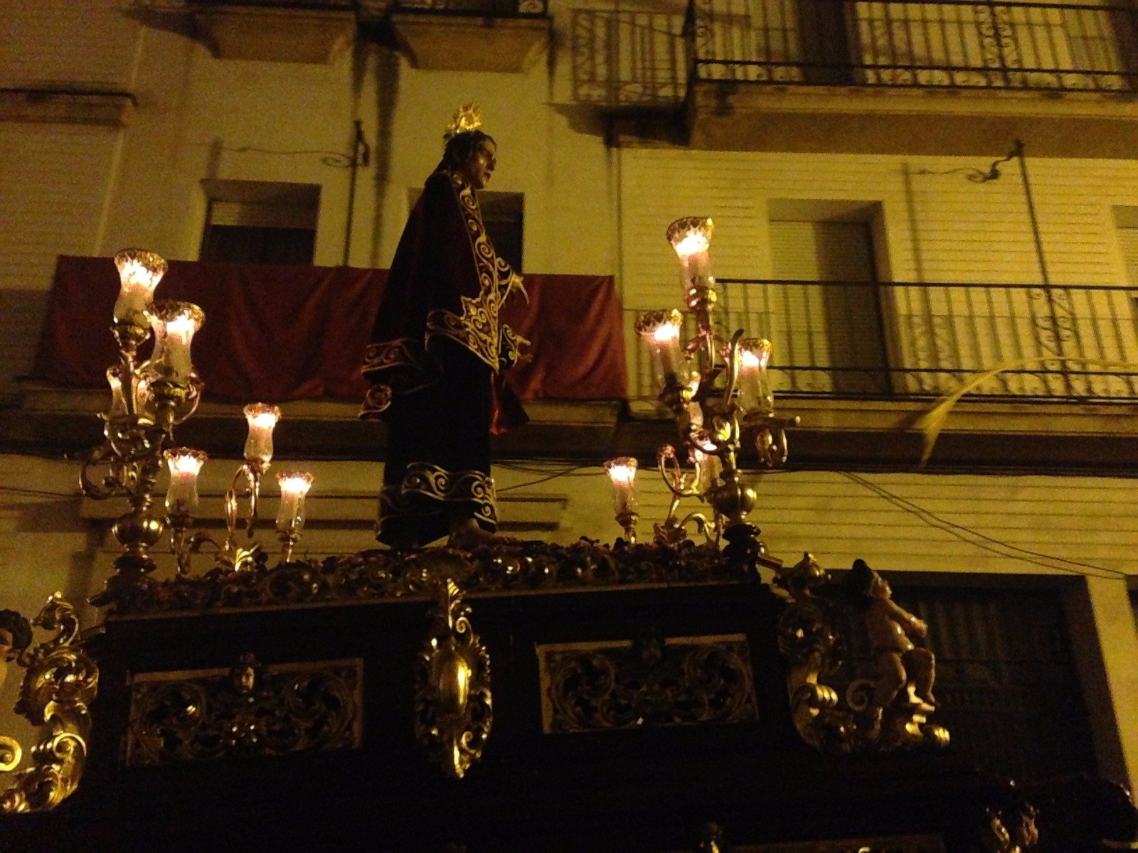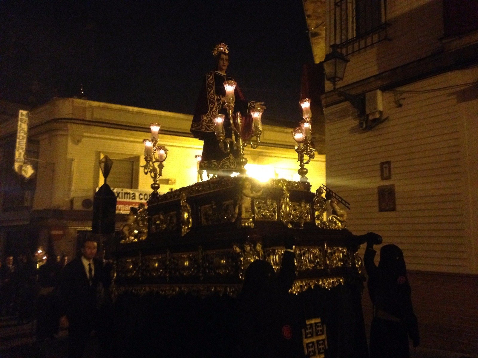 La Hermandad de Jesús de Alcalá de Guadaíra decidió realizar su estación de penitencia como es habitual en la Madrugá del Jueves Santo. Sin embargo, a partir de las 6:30 de la mañana, una llovizna sorprendió a Nuestro Padre Jesús Nazareno, San Juan Evangelista y María Santísima del Socorro en su recorrido hacia el Monte Calvario.