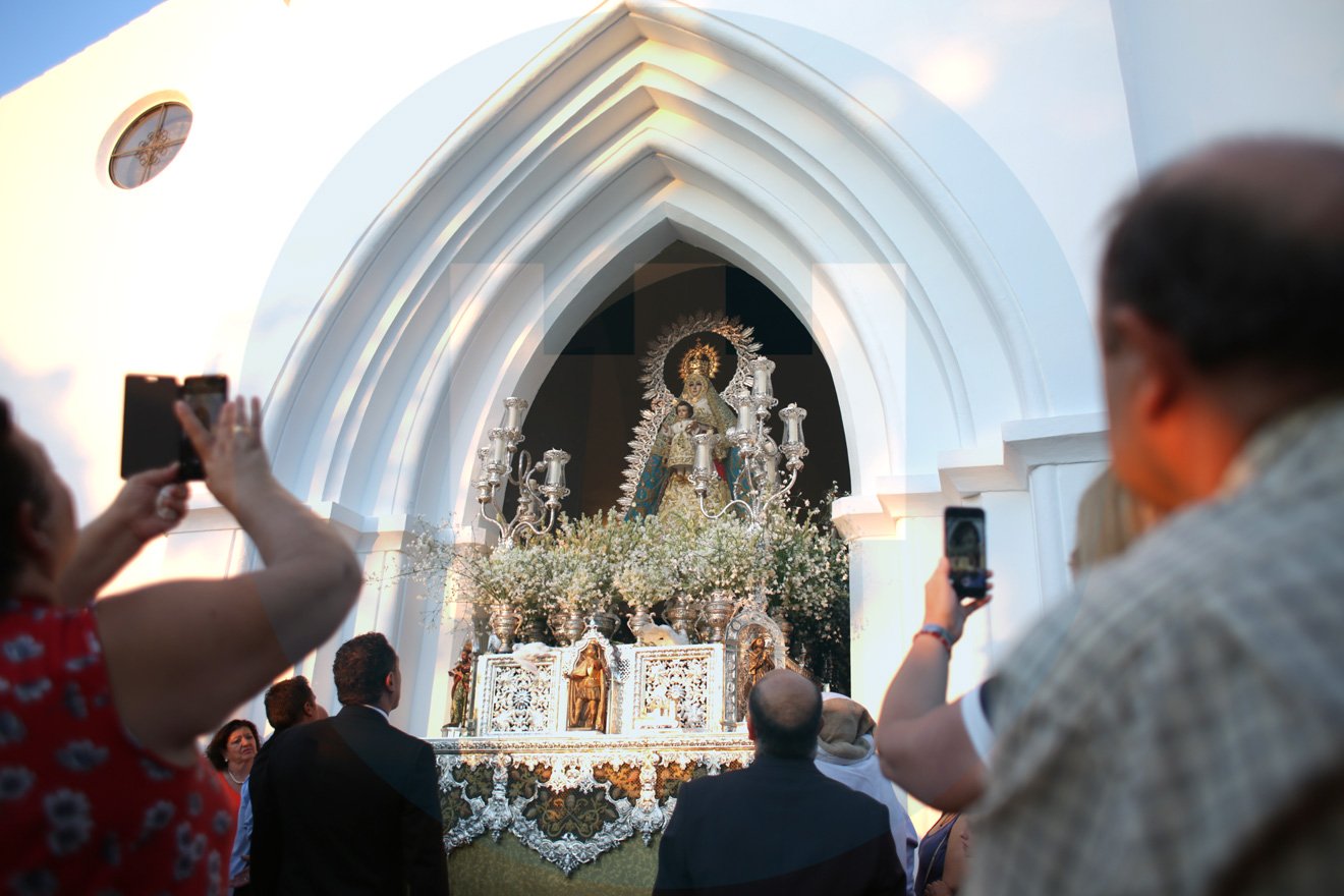 Un año más, Alcalá de Guadaíra se echó a la calle para disfrutar de la salida procesional de su patrona, Nuestra Señora del Águila Coronada. Cientos de personas abarrotaban la puerta del Santuario, congregadas por el fervor popular y la devoción de su pueblo. Probablemente, fue una de las procesiones con más afluencias de los últimos años.