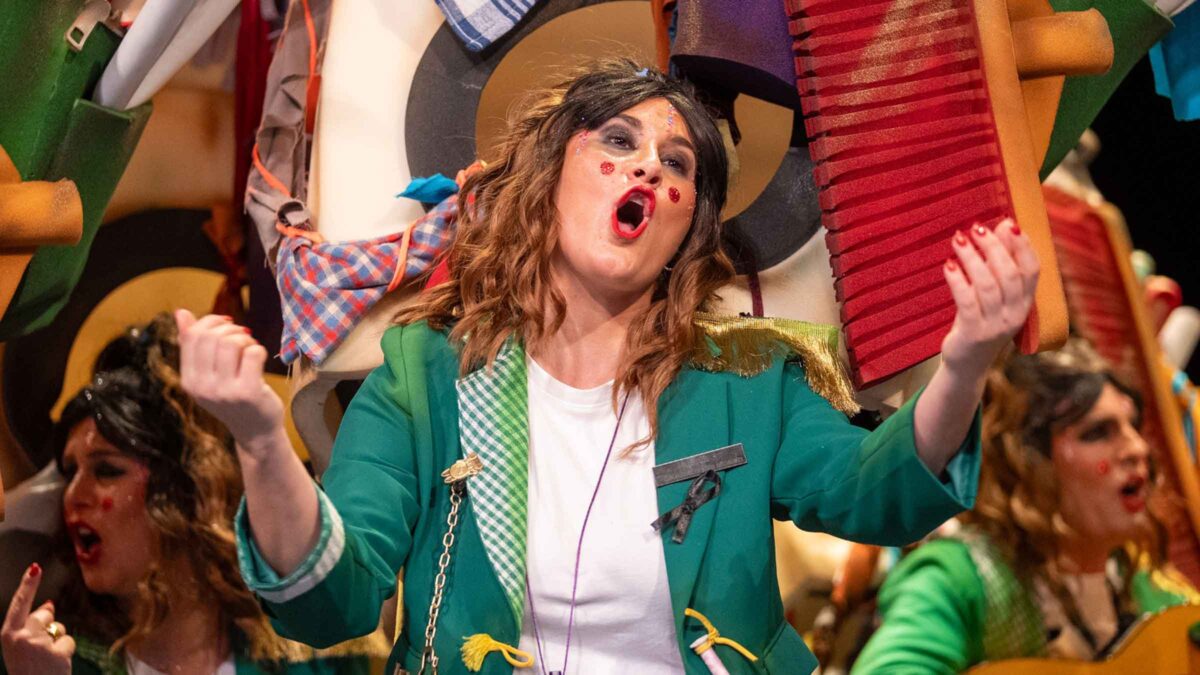 La comparsa de Alcalá regresó este jueves al Gran Teatro Falla en el COAC 2026 con la propuesta titulada Las Jorobadas. El grupo presentó un tipo que representa de manera simbólica el agotamiento físico y mental de la mujer contemporánea, utilizando la imagen de mujeres encorvadas por una carga invisible como eje central del repertorio.