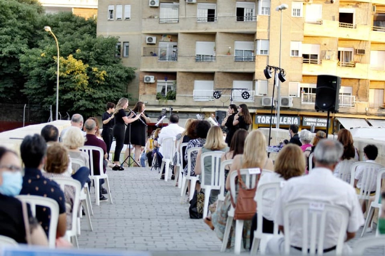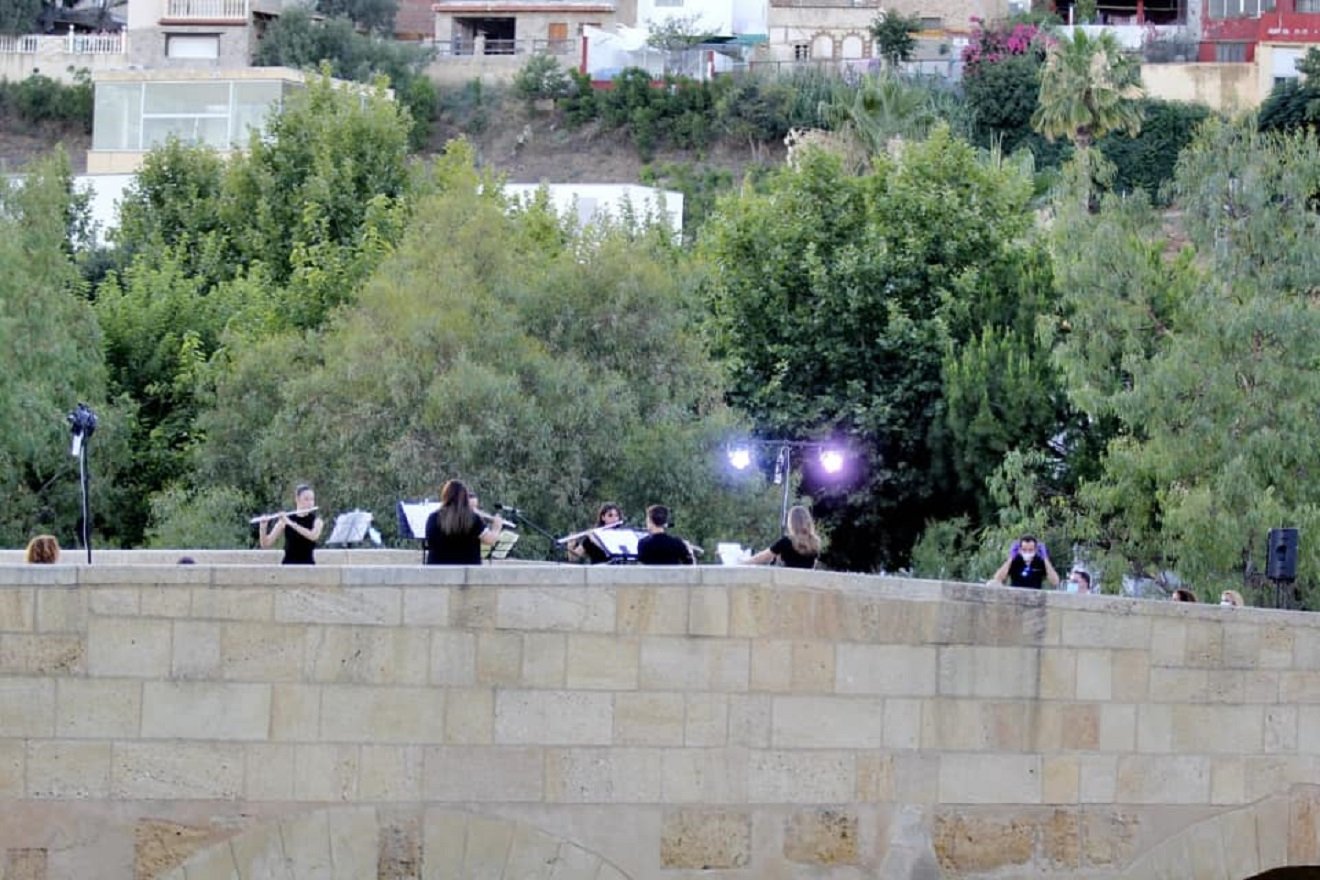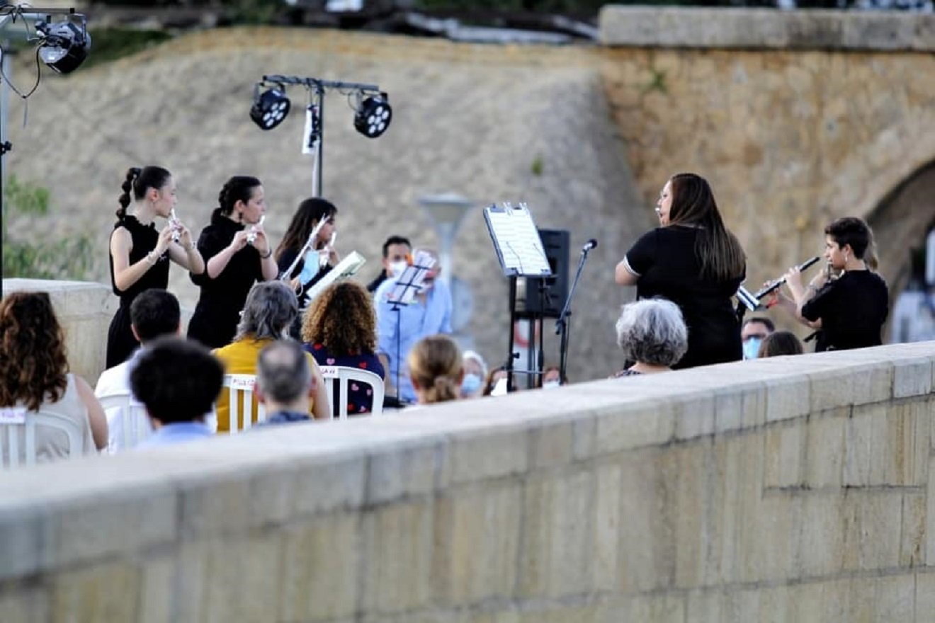 Este domingo se celebraba el Día de la Música con un concierto en el Puente Romano, que corría a cargo de diez músicos de la Banda de música de Alcalá con un ensemble de flautas, un quinteto de clarinetes, un emsemble de saxos y grupo de metales.