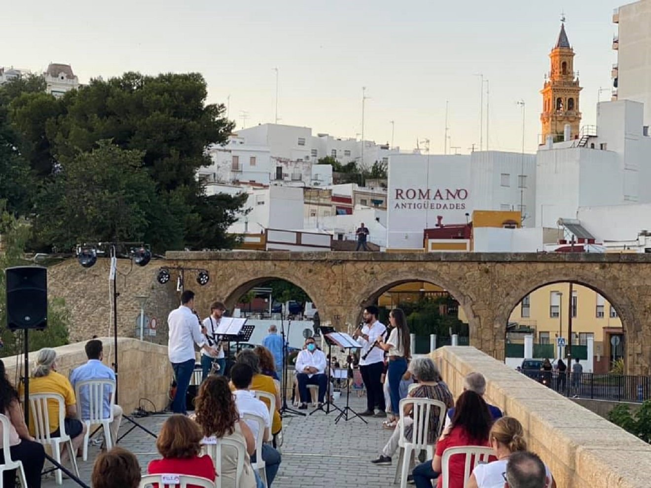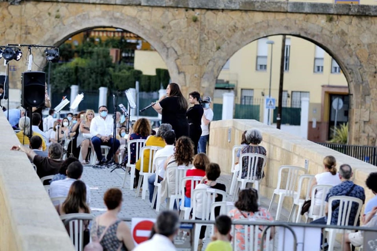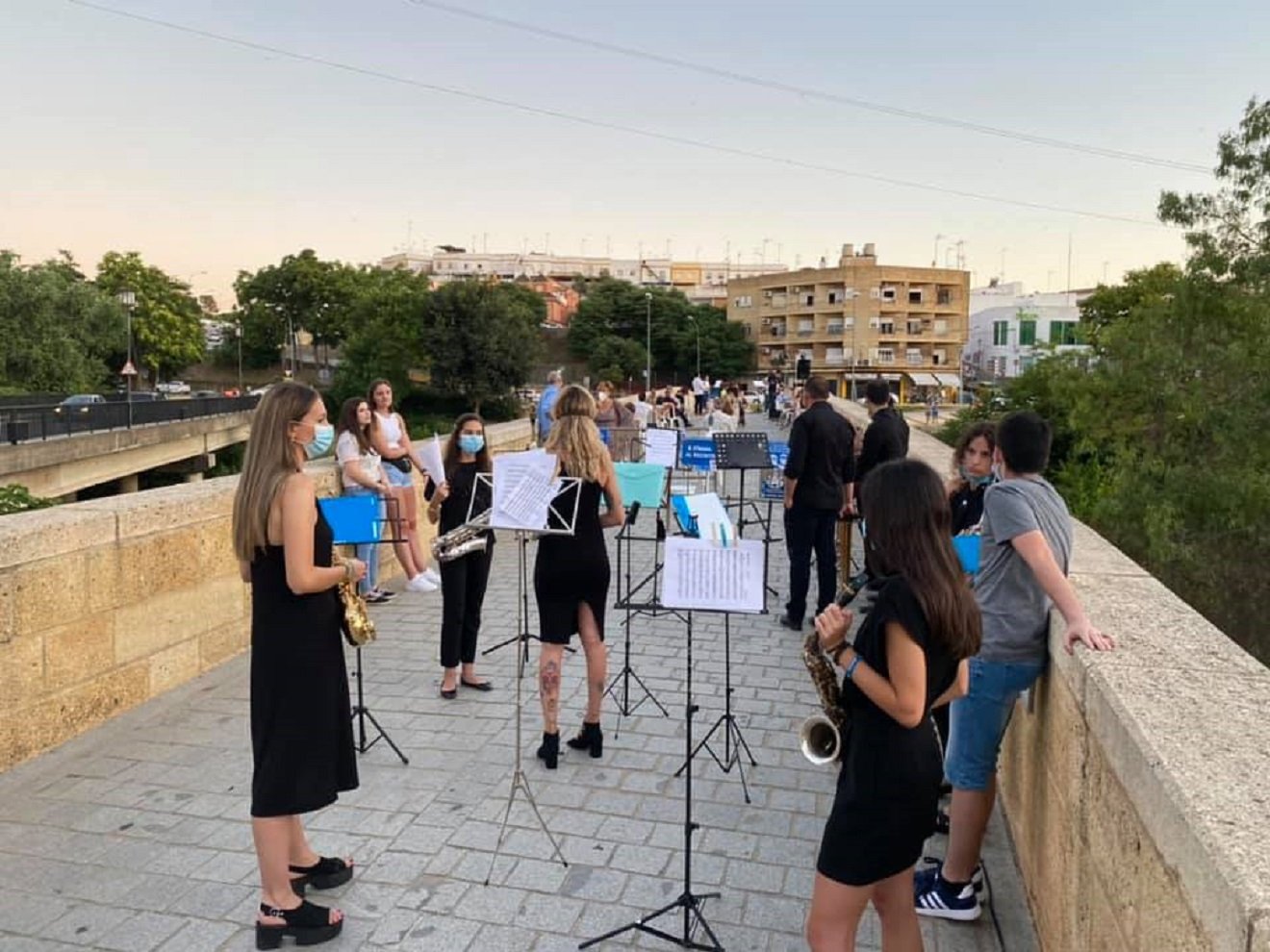 Este domingo se celebraba el Día de la Música con un concierto en el Puente Romano, que corría a cargo de diez músicos de la Banda de música de Alcalá con un ensemble de flautas, un quinteto de clarinetes, un emsemble de saxos y grupo de metales.