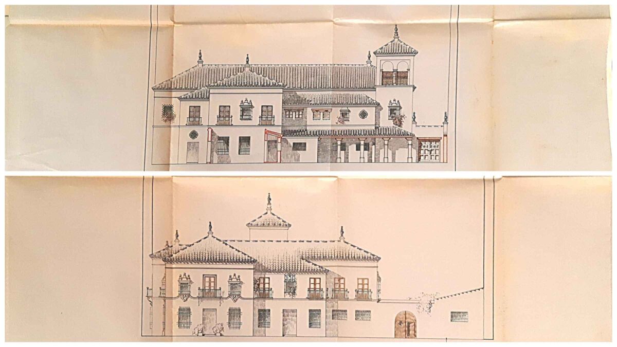 Continuando describiendo las fachadas, la posterior y la lateral izquierda, vemos cómo Talavera nos sigue acercando a las construcciones rurales del S.XVIII donde se inspira para sus diseños, siendo el Hotel Oromana una muestra catálogo de ello. Los alzados diseñados por nuestro arquitecto, tienen un rico modelo compositivo con infinidad de huecos de distintos tamaños y formas, balcones cubiertos, galería porticada, porche, ventanas de varios tamaños, ojo de buey o ventana circular, y una infinidad de huecos con sus correspondientes herrajes.