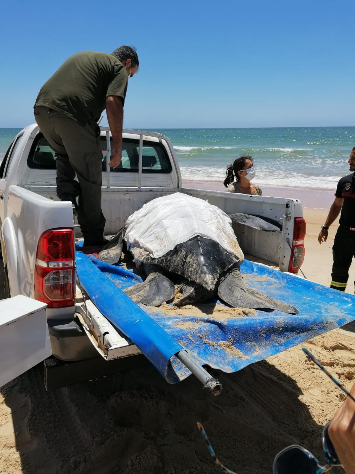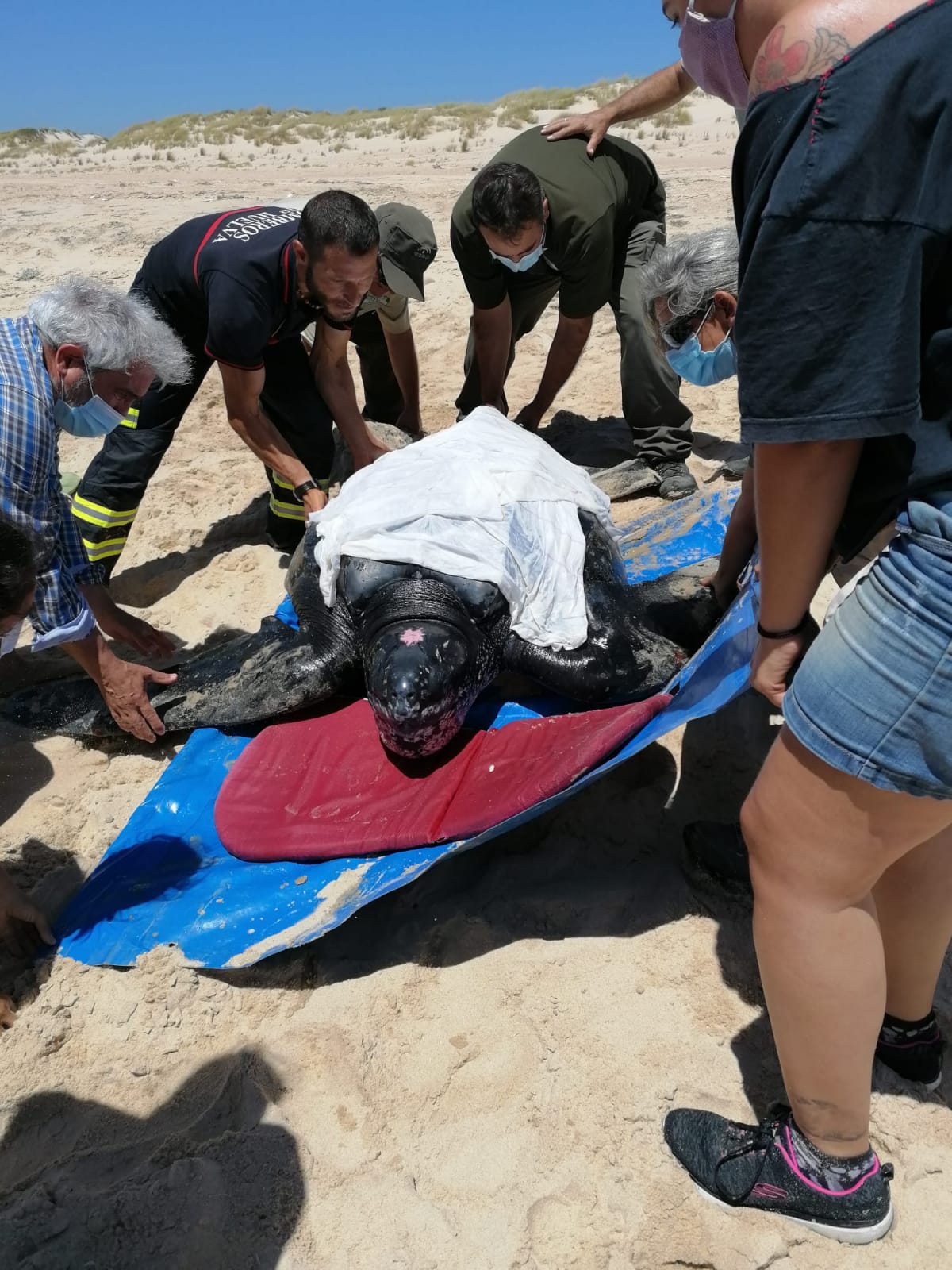 Este miércoles 1 de julio ha tenido lugar el rescate de una tortuga laud en la playa de Almonte, en Huelva. Así ha sido la intervención.