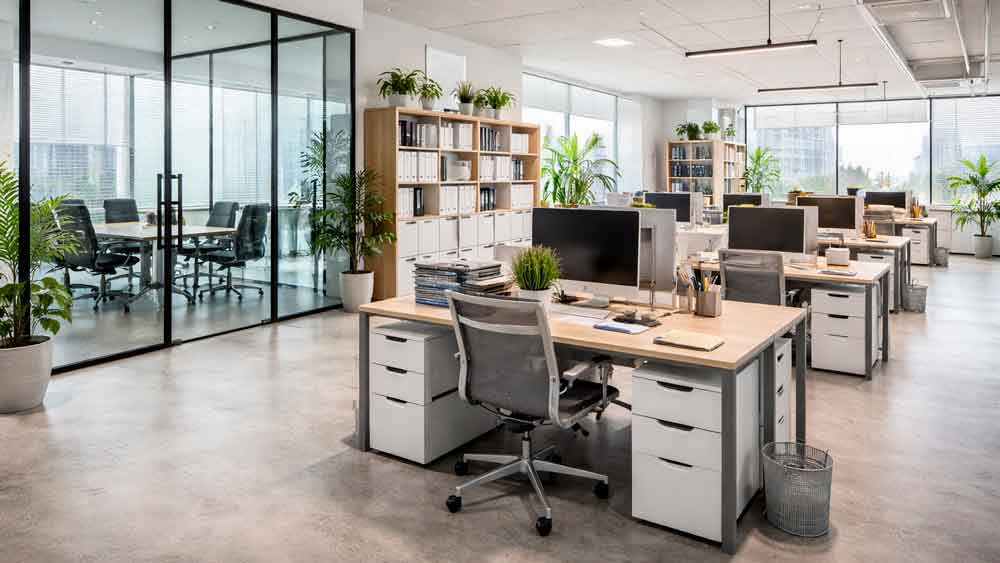 Por último, elegir muebles que se adapten a las necesidades reales del equipo evita soluciones que no sean óptimas. Estanterías, cajoneras, archivadores y armarios, bien planificados, permiten que el entorno acompañe al ritmo de trabajo en lugar de convertirse en un obstáculo.