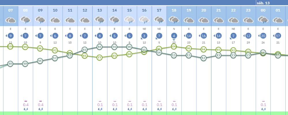 Por último, ya entrada la madrugada del sábado, se prevé una nueva tanda de lluvias a las 00:00, lo que cerrará un día con notable presencia de inestabilidad atmosférica.