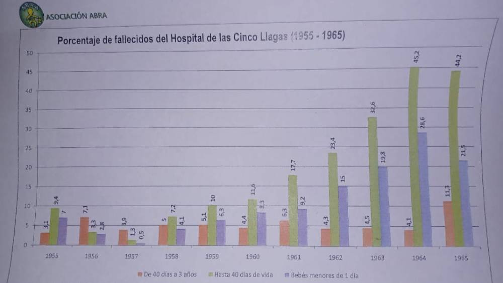 Además, se mostraron datos históricos que evidencian la elevada mortalidad infantil registrada en determinados periodos, como los porcentajes de fallecidos en el Hospital de las Cinco Llagas entre 1955 y 1965, contextualizando así el clima de opacidad y desprotección que rodeaba muchos partos en aquella etapa.