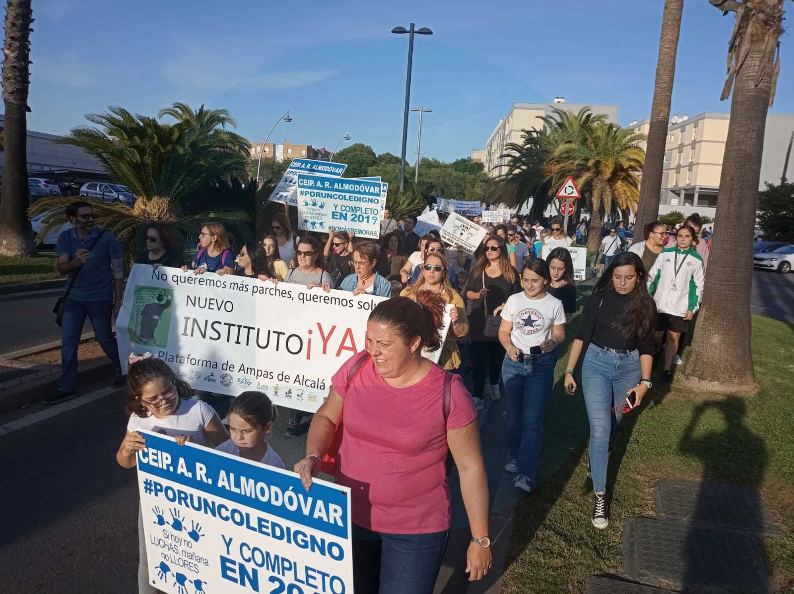 Cerca de medio millar de personas, entre los que se encuentran madres, padres y jóvenes, se han manifestado en la tarde de este jueves 17 de octubre por la situación educativa de Alcalá de Guadaíra. El acto reivindicativo, convocado por la Plataforma de Ampas de Alcalá, se ha iniciado en la parcela donde el Ayuntamiento anunció el pasado mes que se construirá un nuevo instituto.