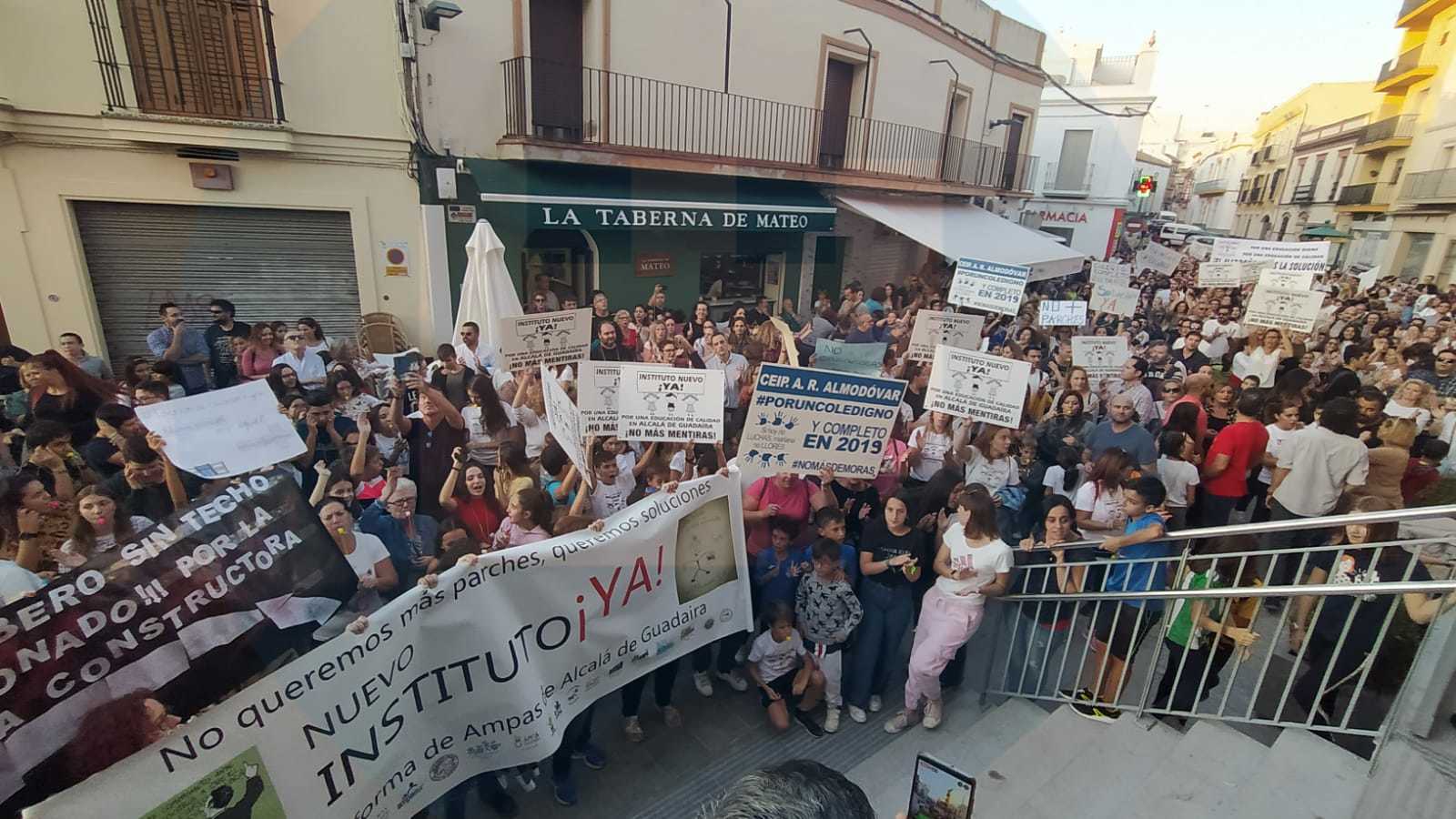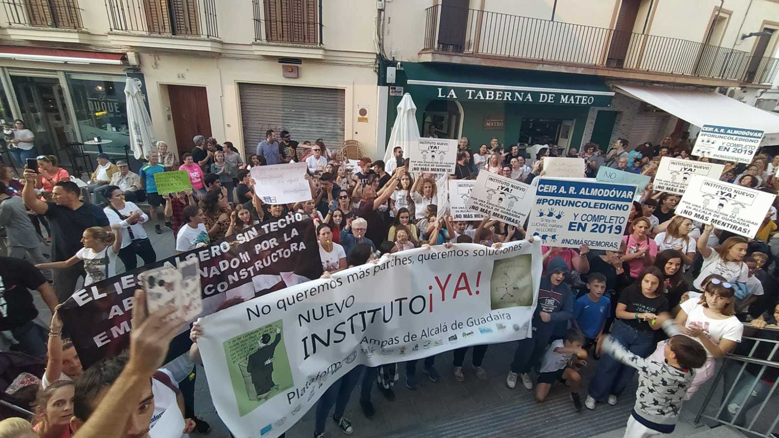 La manifestación ha concluido en la puerta del Consistorio, donde se ha leído un manifiesto de protesta en el que se ha denunciado que la educación en Alcalá «ha sufrido un total abandono por parte de las Administraciones competentes». Entre las diferentes quejas que han expuesto se ha hablado del CEIP Antonio Rodríguez Almodovar, que, indican, «está a medio construir desde hace seis años»; también del Manuel Alonso, que «tiene caracolas desde el 2017». En cuanto a los institutos, han denunciado, «cuatro de los cinco que hay están masificados», además de tener daños no reparados. Han señalado también los problemas existentes en la adaptación de la guardería El Madroño para acoger líneas de secundaria. «Todo eso lleva a que nuestros hijos no reciban la educación que merecen».