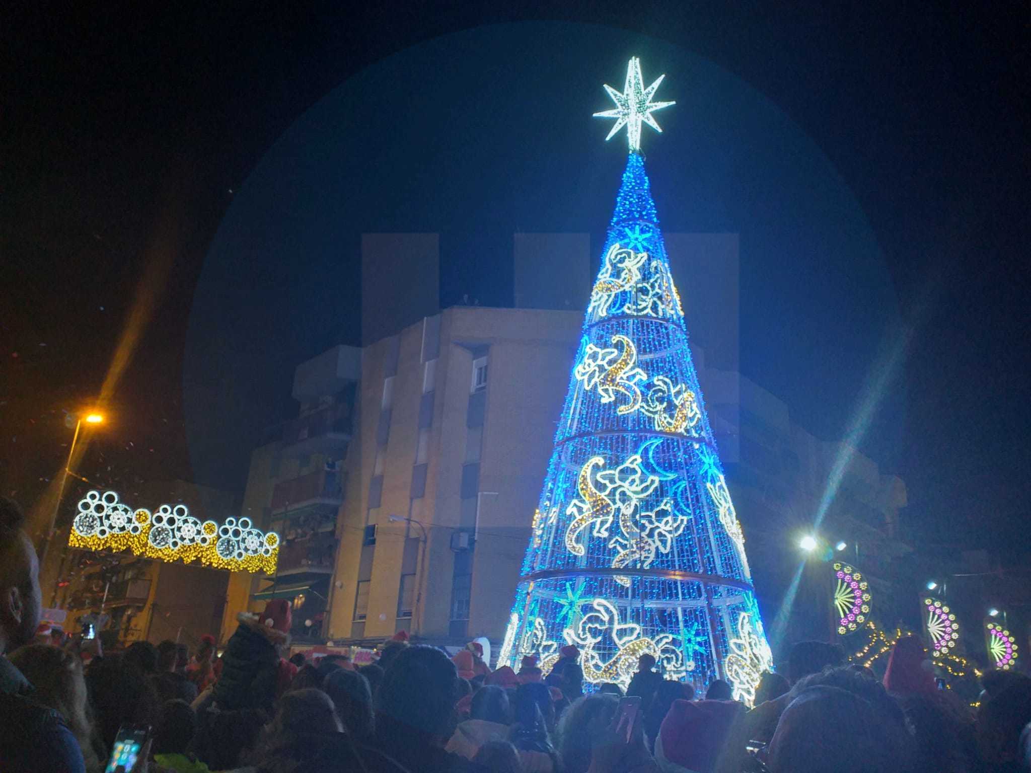 El gran árbol de Navidad instalado en la céntrica Plaza de la Almazara ha sido el eje de las actividades gratuitas que comenzarán a las seis de la tarde. La tarde comenzó con un pasacalles de la Banda de Música Nuestra Señora del Águila,  seguido, sobre el escenario, los bailes y villancicos de las academias de Conchi Ávlia y Eli Vargas, y el grupo ‘Al Aire’. Simultáneamente,  los pequeños podrán han disfrutado de un novedoso taller, impartido por los constructores de Los Lunnis.