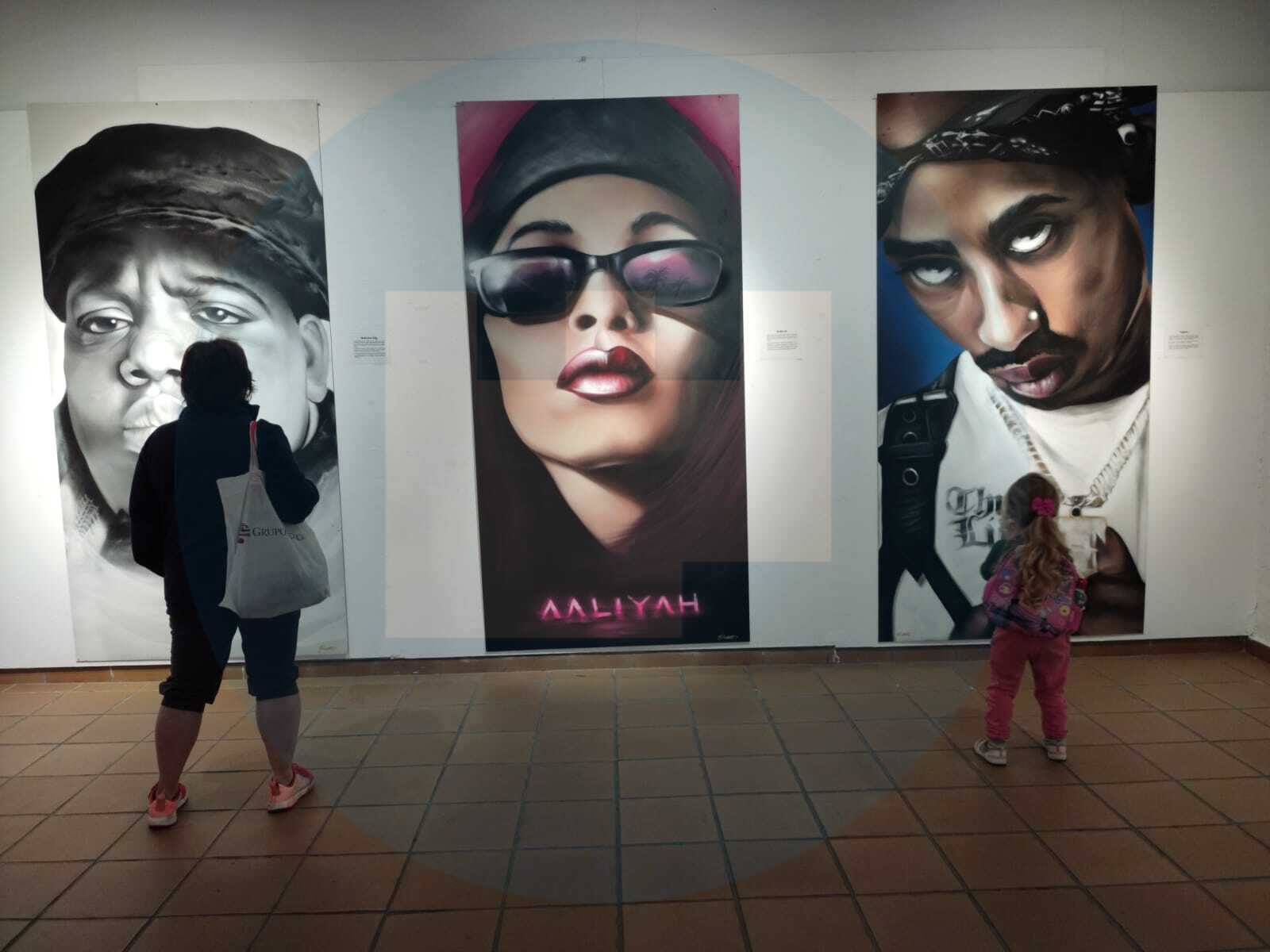 Las obras incluyen guiños al inicio de esta forma artística de expresión. Entre ellas, se incluyen retratos a tres de los artistas principales percusores de la música hip hop: Tupac, Aaliyah y The Notorius Big.