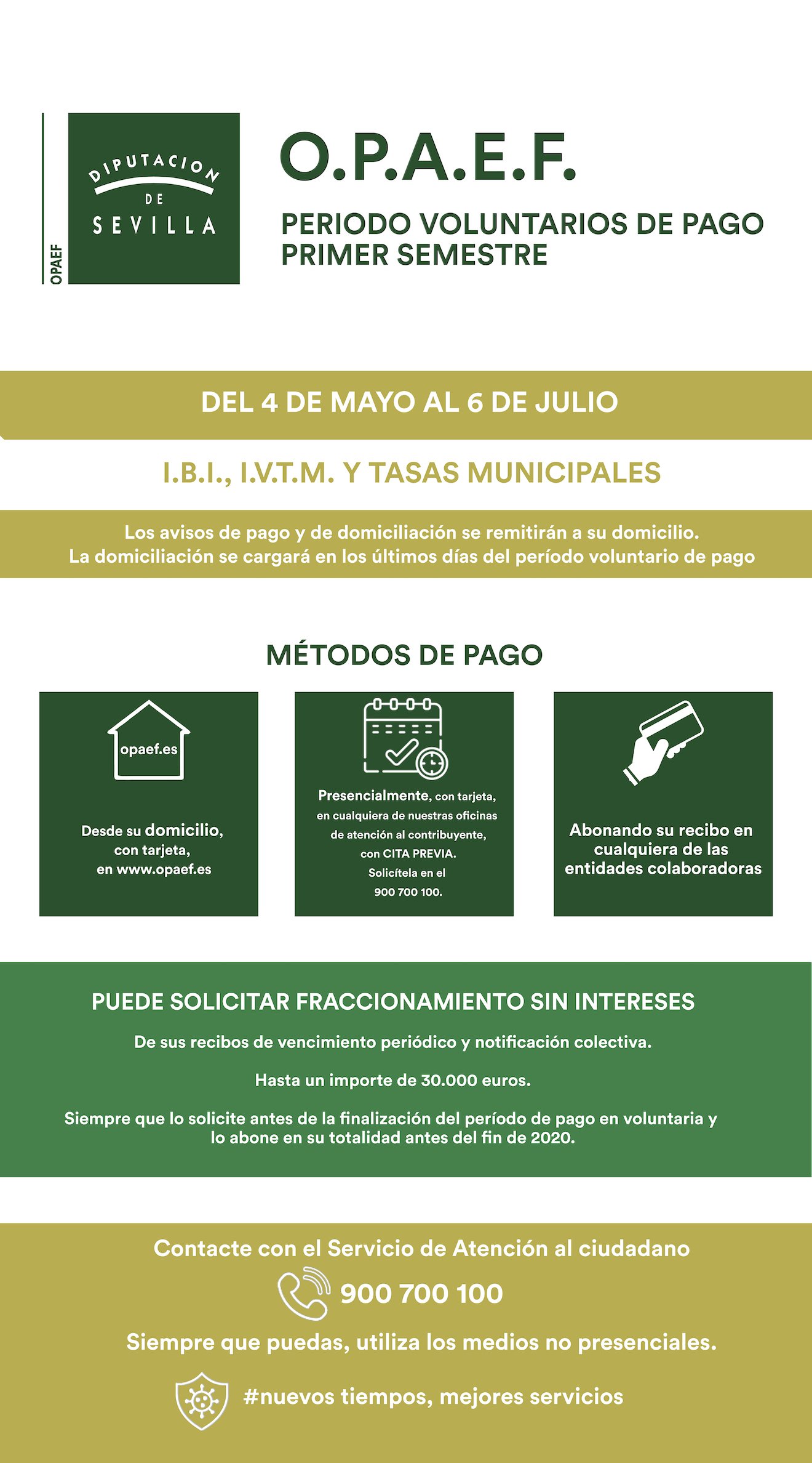 Durante el período de ingreso en voluntaria podrá solicitarse el fraccionamiento sin intereses. El OPAEF abre sus oficinas de atención al contribuyente para facilitar las gestiones. Para evitar colas y esperas la atención se realizará mediante cita previa.
