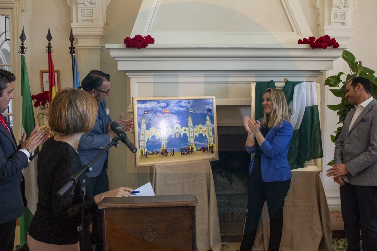 La portada de Feria de estilo mozárabe, pintada con flores y hojarasca en colores, con un arco central y dos laterales azulejería y rematadas con cuatro torres minaretes, rematadas con cúpulas de 17,5 metros de alto y 37 de ancho. Estará iluminada por 57.628 lámparas de leds en bajo consumo y ornamentada con motivos florales.