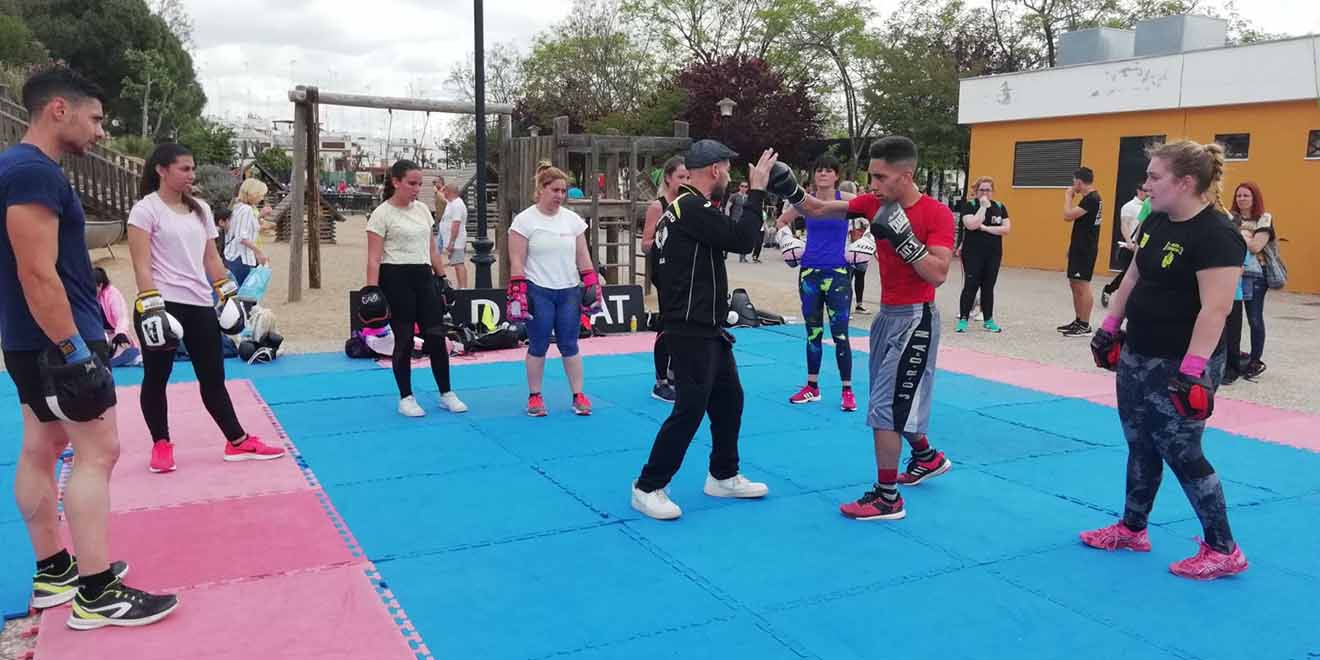 Alcalá de Guadaíra se ha echado a la calle para hacer deporte desde la Plazuela al Parque Centro con trial bici, spinning, fitness, yincana, rocódromo, tirolina, además de baloncesto, bailes de salón, fútbol y otras muchas ofertas para hacer de esta jornada un día festivo para todas las edades entorno al deporte.