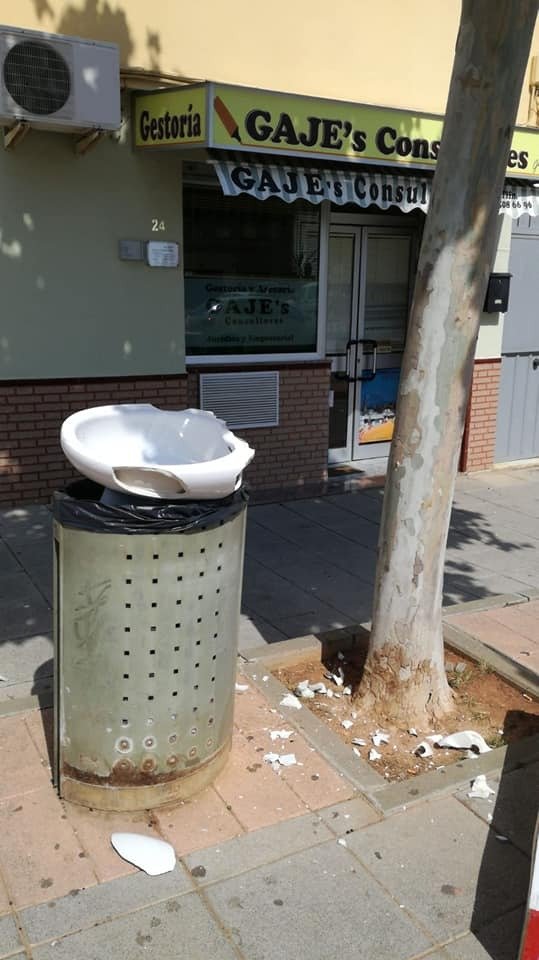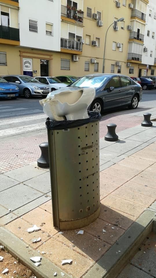 Ha ocurrido en la zona norte de la ciudad, concretamente en la calle Pablo Picasso. Al nombre del genio malagueño en el rótulo de la calle tampoco se le puede achacar la inspiración de quienes hayan hecho esto. Todo es más prosaico. Un inodoro roto, encajado en una papelera, no tiene más lectura que la de la vergüenza cívica.