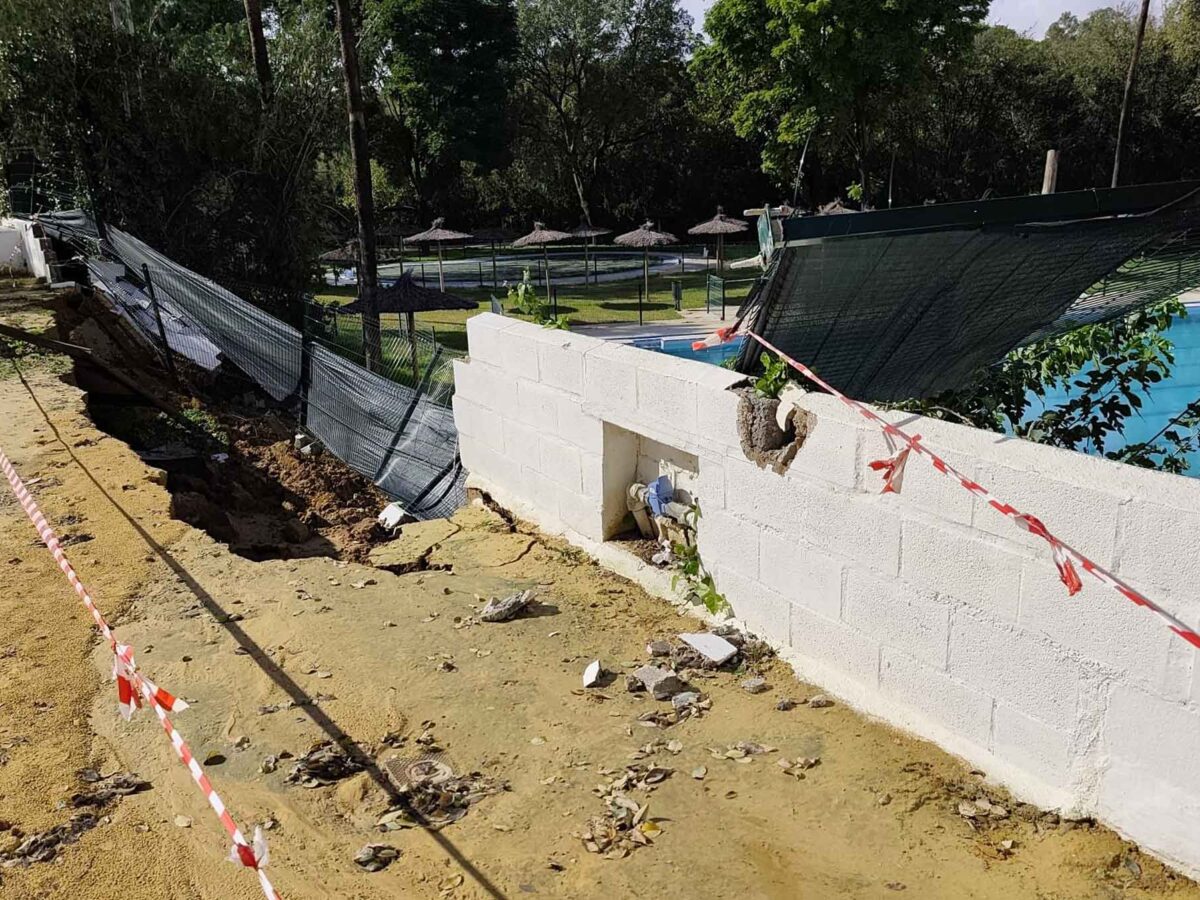 Un desprendimiento de tierra tira parte del muro de la piscina municipal